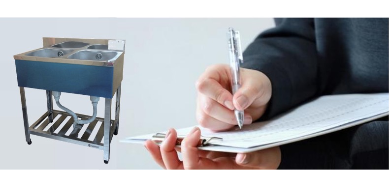 保健所では、手洗い用と洗浄用が独立しているかを確認します。