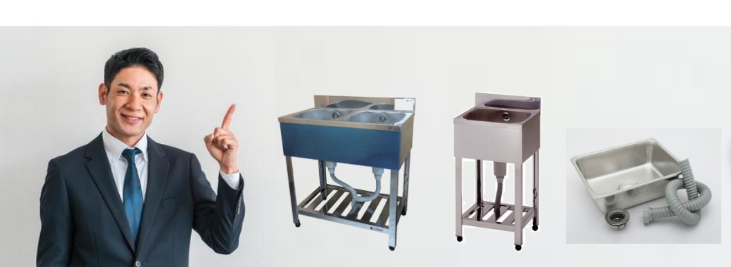 業務用シンクはシンクの深さもあるので、保健所許可で指摘されたと聞いたこともないので安心です。