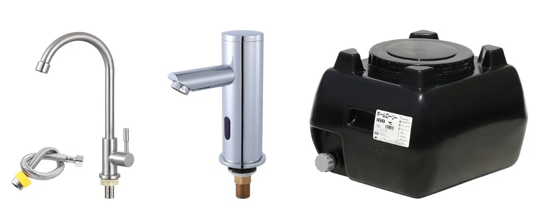 保健所審査では実際に給水タンクに電動ポンプをいれて、蛇口から水が出ること、シンクから排水タンクへ水が流れることの実演もチェックされるので、シンク・タンク・蛇口・給水ポンプはセットで審査基準を満たすように準備をすることが大切です。